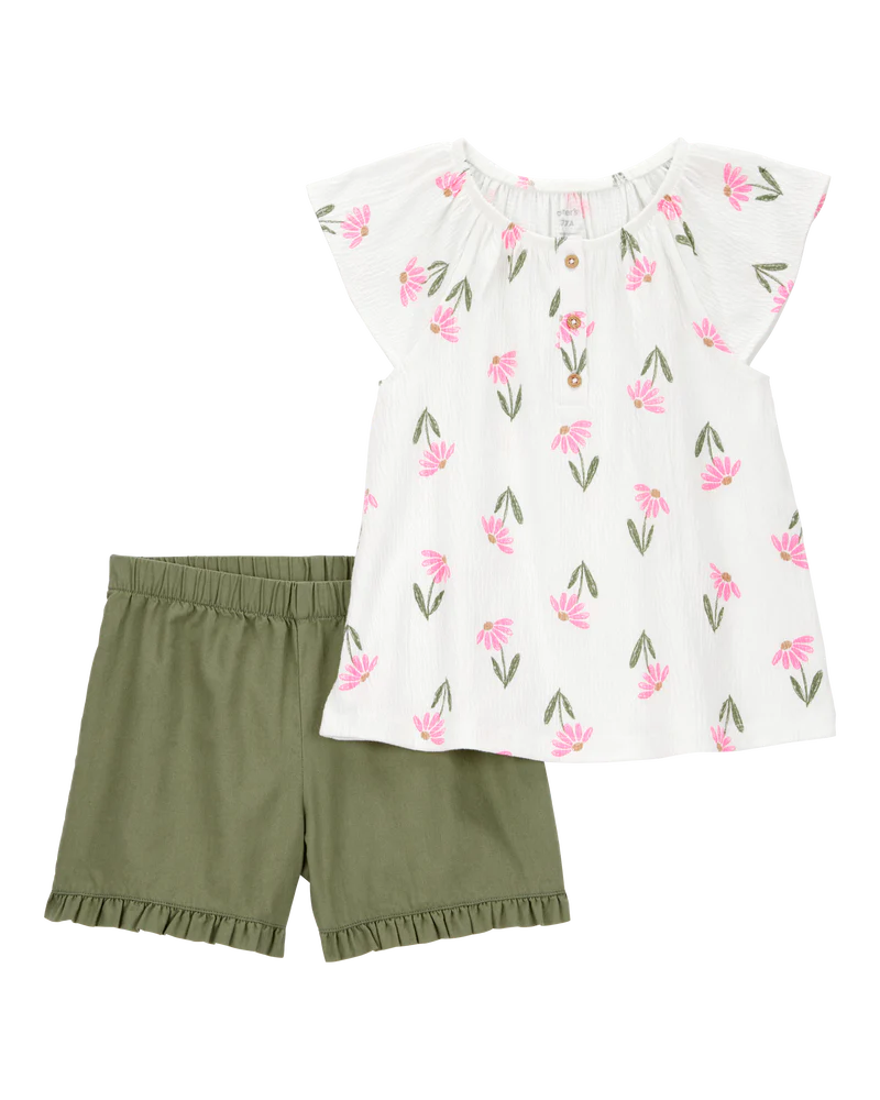 Carter's Toddler 2-Piece Floral Top & Short Set - Cream/Green