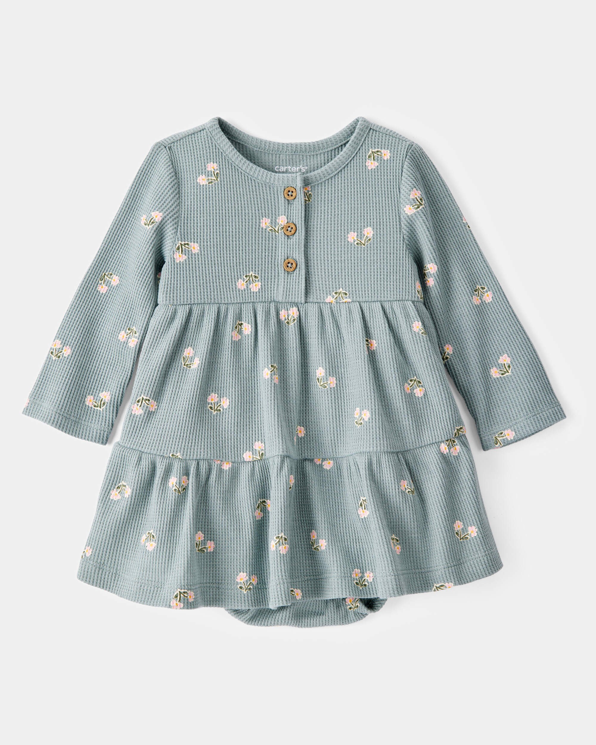 Carter's Baby Floral Waffle Knit Bodysuit Dress - Green
